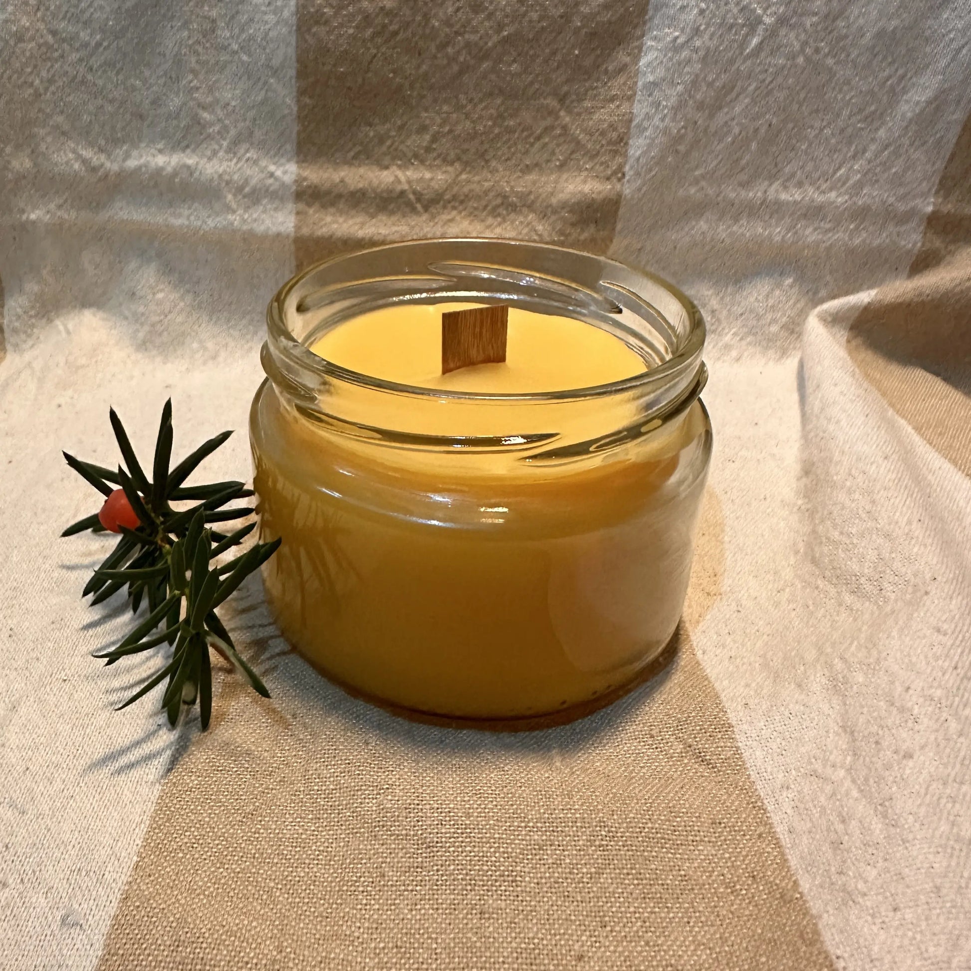 Ein Herzstück für dein Zuhause: Unsere Duftkerze im Glas vereint reines Bienenwachs, feine ätherische Öle und einen sanft knisternden Holzdocht. Handgegossen mit Liebe und dekoriert mit natürlichen Kräutern, schenkt sie dir Momente der Ruhe und Gemütlichkeit.